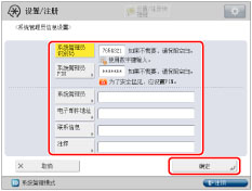 [联系信息]: | 按 [联系信息] → 输入“系统管理员”的联系信息 → 按 [确定]。 |