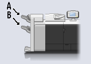 鞍式分页装订处理器-AN + 大容量堆叠器-H | 托盘A:1 复印、1 存取已存储文件、1 打印机、2 接收、2 其他 托盘B:2 复印、2 存取已存储文件、2 打印机、3 接收、3 其他 托盘C:1 接收、1 其他 | ![]() |