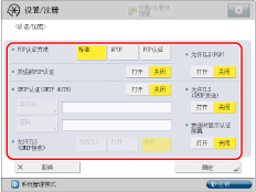 如果要发送加密数据,将 <允许TLS(POP)> 或 <允许TLS(SMTP发送)> 设置为“打开”。