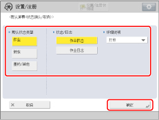 如果选择 <默认状态类型> 中的 [作业],则可以设置 <状态/日志> 和 <详细说明>。