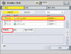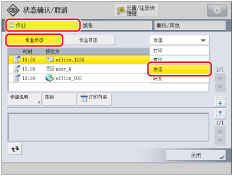 [重新发送]: | 重新发送作业。如果选择的作业具有多个接收方,按 [多路发送列表] → 选择要向其重新发送作业的接收方 → 按 [重新发送]。 |