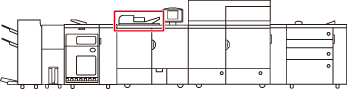 本节介绍如何清除“双面彩色图像阅读器”内发生的卡纸。下图指示“双面彩色图像阅读器”的位置。