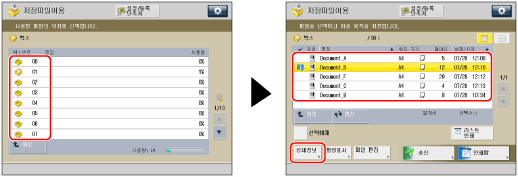 원하는 박스를 선택하고 → 원하는 파일을 선택하고 → [상세정보]를 누릅니다.