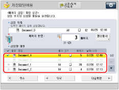 이름을 지정하지 않고 파일을 생성할 경우 기기는 해당 파일이 생성된 연월일과 시각을 사용하여 파일 이름을 자동으로 지정합니다. 예를 들어 결합된 파일이 2015년 7월 7일 오후 1시 35분 41초에 생성되었다면 이 파일의 이름은 <20150707133541>이 됩니다. 선택한 파일에 대한 인쇄 설정이 저장된 경우 해당 인쇄 설정은 새 파일에 적용되지 않습니다. |