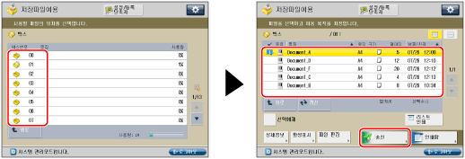 동일한 박스 내에 저장된 파일을 최대 32개까지 선택하여 동시에 송신할 수 있습니다. 최대 999페이지를 동시에 송신할 수 있습니다. |