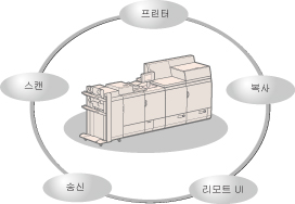 이 기기를 고속 네트워크 프린터로 사용할 수 있습니다. 양면 인쇄와 페이지 정렬 등 다양한 출력도 가능합니다.