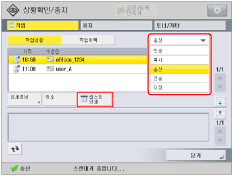 드롭다운 리스트를 누르고 → [송신]을 선택하고 → [리스트 인쇄]를 선택합니다.