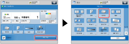 : 사용 가능선택 품목 기기 | 소트 (한부씩) | 그룹 (페이지별) | 시프트 | 90도 회전 | 스테이플 | 펀치구멍 | 다중 구멍 펀치 | ||