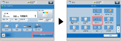 문자 또는 선을 선명하게 복사하려면 문자 영역에 대해 [강하게] 쪽의 설정을 선택해야 합니다. 인쇄사진 또는 기타 하프톤이 포함된 원고를 복사하려면 사진/화상 영역에 대해 [약하게] 쪽의 설정을 선택해야 합니다.