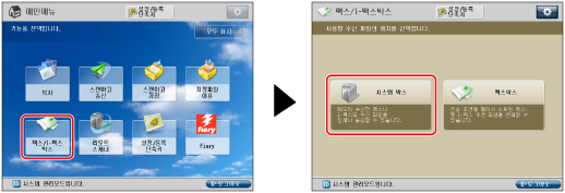 → [팩스/I-팩스 박스] → [시스템 박스]를 누릅니다.