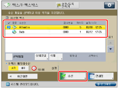 한번에 256개의 수신인을 지정하고 발송할 수 있습니다. 하지만, 수신인에 그룹 주소가 지정되었을 경우 해당 그룹에 저장된 각각의 주소는 하나의 수신인으로 카운트됩니다. [송신전에 확인]이 '설정'으로 지정되어 있는 파일 서버로 송신하려는 경우, 비밀번호 입력 화면이 나타납니다. 이 경우 서버 비밀번호를 입력하십시오. 하지만 [송신전에 확인]이 '설정'으로 지정되어 있는 파일 서버를 포함하는 그룹 주소로는 송신할 수 없습니다. ("파일 서버 주소 등록" 참고) 선택한 파일을 송신 후 자동으로 삭제하려면 [송신 후 파일 삭제]를 누르십시오. 파일이 송신되는 동안 메일 박스에서 해당 파일을 인쇄 또는 저장할 수 없습니다. 선택한 수신처가 메일 박스를 포함하는 그룹 주소인 경우 송신 중인 파일은 해당 메일 박스로 송신(또는 저장)되지 않습니다. |