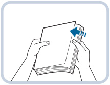 인쇄물의 품질을 높이려면 캐논에서 권장하는 용지를 사용하십시오. 용지를 적재하기 전에 급지가 원활하게 되도록 용지 사이로 여러 차례 바람을 불어넣은 후 가장자리를 정렬하십시오. 또한 새로 개봉한 용지에는 항상 바람을 불어넣어야 합니다. |