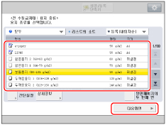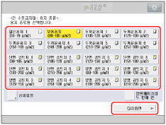 용지 종류에 대한 자세한 내용은 "사용할 수 있는 용지"를 참고하십시오. 용지 종류 선택에서 상세 설정 목록에 표시되지 않는 용지 종류를 등록할 수 있습니다. 사용자 설정 용지 종류 등록에 대한 자세한 내용은 "사용자 설정 용지 종류 등록"을 참고하십시오. |