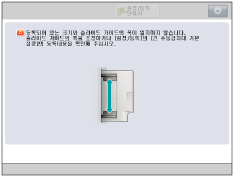 슬라이드 가이드를 조정하라는 화면이 표시되면 슬라이드 가이드 폭을 조정하고 → 용지 크기를 지정한 후 → [확인]을 누르세요. ![]() 값을 잘못 입력했을 경우에는 를 누르고 → 올바른 값을 입력합니다.크기 버튼([S1] ~ [S5])에 저장된 등록 용지 크기를 선택하려면 먼저 크기 버튼에 비정형 크기의 용지를 저장해야 합니다. 비정형 크기 용지 저장에 대한 자세한 내용은 "사용자 설정 용지 크기 등록/편집/삭제"를 참고하십시오. |