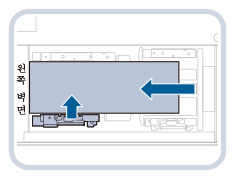 긴 시트 용지 묶음이 왼쪽 벽과 같은 높이인지 확인하십시오. ![]() 오른쪽 크기 변경 판(외부)을 밀 때 용지가 판 아래에 들어갈 수도 있으므로 주의하십시오. |