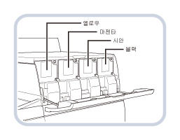 왼쪽부터 옐로우, 마젠타, 시안 및 블랙의 순서대로 토너 카트리지가 장착됩니다. ![]() |