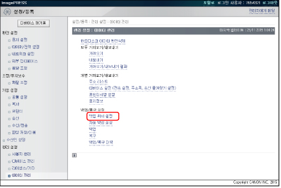 백업 일정표를 만들고자 하는 경우 [설정/등록] → [데이터 관리] → [자동 백업 설정]을 클릭하십시오. [전체 백업] 또는 [변경된 부분만 백업] 및 [매일] 또는 [요일지정]을 선택한 후 → 백업을 수행할 시간을 입력하십시오. |