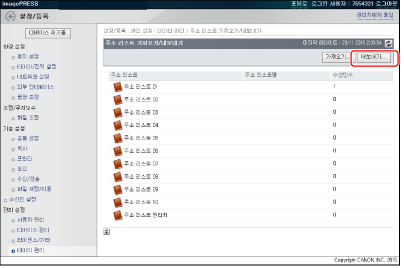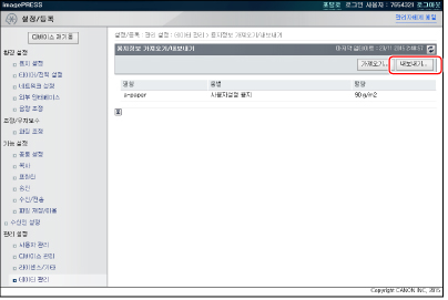[용지정보]를 <개별 가져오기/내보내기>에 대해 클릭하고 → [내보내기]를 클릭합니다.