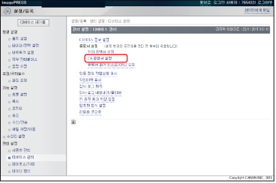 리모트 UI를 사용하여 CA 인증서 파일을 설치합니다. 설치된 CA 기기의 조작 패널에서 등록하여 인증서 파일을 CA 인증서로 사용할 수 있습니다.