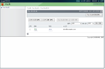 리모트 UI에서 사용할 수 있는 주소록 관리 작업은 기기 조작 패널의 [수신인 설정](설정/등록)에서 액세스할 수 있는 관리 작업과 동일합니다. |