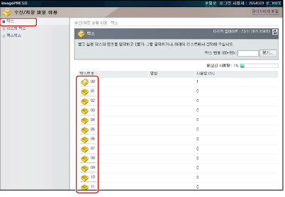 [수신/저장 파일 이용]을 클릭하고 → [박스]를 선택하고 → 원하는 박스의 이름을 클릭합니다.