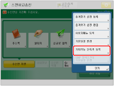 두 가지 기능 단축키가 스캔하여 송신하기 화면에 표시됩니다. 양면원고] 및 [원고혼재]는 기본으로 표시됩니다. 이러한 단축키의 자주 사용하는 기능을 설정할 수 있습니다.