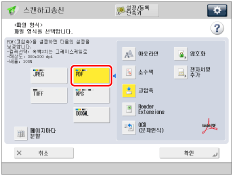 PDF 파일 형식으로 [소수색]을 선택하는 경우 컬러 모드는 [자동 (컬러/흑백)] 및 [흑백2치]에서 [자동 (컬러/ 그레이)] 및 [그레이스케일]로 변경됩니다. 지정하는 컬러 모드로 문서를 스캔하는 경우 PDF 파일 형식을 [고압축], [소수색] 및 [아웃라인] 이외의 형식으로 변경하십시오. |