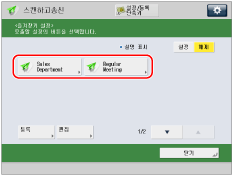 문서를 송신하기 전에 선택한 버튼에서 불러온 설정을 수동으로 변경할 수 있습니다. 선택한 버튼에 여러 수신처가 저장된 경우 수신처는 설정된 순서대로 나열되지 않을 수도 있습니다. |