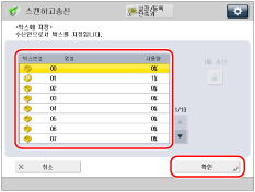 지정된 스캔 크기(사용자설정 크기, 긴 원고 또는 임의 크기)를 사용하여 스캔한 문서는 박스에 저장할 수 없습니다. 현재 기본 설정을 사용하여 박스에 저장된 문서는 3일 후에 자동으로 삭제됩니다. [박스 설정/등록]에서 이 설정을 변경할 수 있습니다. ("박스 설정" 참고) |