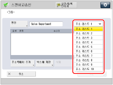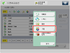 드롭다운 리스트를 누르고 → 주소록 1 ~ 10에서 주소록을 선택합니다.