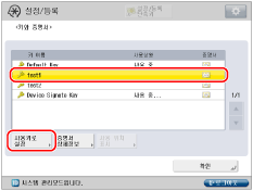 키 페어 및 서버 인증서는 기기에 미리 설치됩니다. 또한 미리 설치된 키 페어와 서버 인증서를 사용하여 암호화된 TLS 통신을 수행할 수도 있습니다. 미리 설치된 키 페어의 이름은 'Default Key'입니다. [증명서 상세정보]를 누르면 인증서를 확인할 수 있습니다. [사용 위치 표시]를 누르면 무슨 키를 사용 중인지 확인할 수 있습니다. |