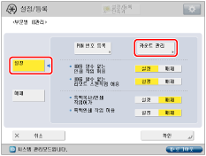 인쇄를 취소하려면 [취소]를 누릅니다. 기기가 페이지 카운트 리스트를 인쇄하는 중에 표시된 화면을 닫으려면 [닫기]를 누릅니다. 용지 데크의 설정이 [기능 설정](설정/등록)의 [용지 카세트 자동선택 설정/해제]의 [ 기타]에서 '설정'으로 지정되어 있고 이 용지 데크에 A3, A4 또는 A4R 용지(보통용지, 재생용지, 얇은용지 또는 색상지)이 적재된 경우에만 리스트를 인쇄할 수 있습니다. 하지만 [복사]에 대해 [ 용지종류를 고려함]을 [용지 카세트 자동선택 설정/해제]에서 '설정'으로 지정한 경우, 컬러 용지가 지정된 용지 데크에서는 인쇄할 수 없습니다. ("용지 카세트 자동 선택 사용" 참고) |