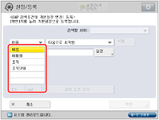 LDAP 서버에서 수신인을 검색할 때 자주 사용하는 검색 조건을 등록하면 등록된 검색 조건이 검색 화면에 기본값으로 표시됩니다.