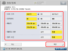 <용지 크기> | 송신할 용지 크기를 설정하십시오. A5는 [A4/LTR]에 포함됩니다. |