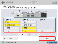 장착된 옵션 | 기본 설정 | 트레이 A/B/C |
