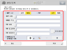 SMTP 서버의 IP 주소 또는 이름을 입력하고 → [확인]을 누릅니다.