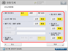 [설정]을 <SMTP 수신>에 대해 누르고 → [해제]를 <POP>에 대해 누릅니다.