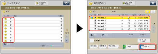 원하는 박스를 선택하고 → 원하는 파일을 선택하고 → [인쇄함]을 누릅니다.