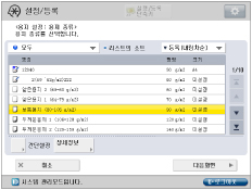 급지한 용지의 종류가 상세 설정 리스트에 표시되지 않는 경우, 용지 종류를 등록할 수 있습니다. 용지 종류를 등록하는 방법은 "이 기능 개요"을 참고하십시오. 용지 공급원의 사용자 설정 용지 종류를 등록하는 동안에는 용지 종류 설정이 보호되어 [환경 설정](설정/등록)의 [용지종류의 관리설정]에서 사용자 설정 용지 종류의 상세 정보를 변경하거나 사용자 설정 용지 종류를 삭제할 수 없습니다. |
