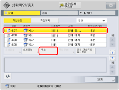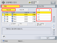 작업 종류에서 [인쇄] 또는 [복사]를 선택한 경우 [현재 복사작업까지 인쇄]를 설정할 수 있습니다. 이 버튼은 현재 일련의 복사/인쇄 작업이 완료된 후 선택된 복사/인쇄 작업을 취소합니다.