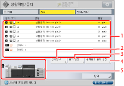 2 | 상세 정보 선택된 용지 공급원에 보급된 용지의 상세 정보를 확인할 때 누릅니다. |