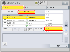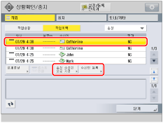 [송신 수신인 으로 지정]: | 선택한 작업의 주소가 입력된 화면을 표시합니다. 주소를 확인한 후 → [확인]을 눌러 송신 화면을 표시하십시오. |