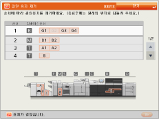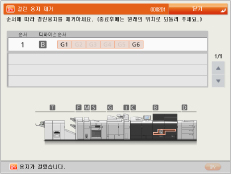 여러 위치에서 용지가 걸린 경우, 터치 패널 화면에 표시된 순서대로 걸린 용지를 제거하십시오. |