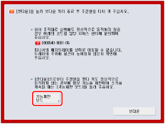 인쇄 기능이 제한될 경우 인쇄 작업은 자동으로 취소됩니다. 스캔 기능이 제한될 경우 스캔 작업은 자동으로 취소됩니다. 에러에 의해 기능이 제한될 경우 기기가 슬립 모드로 완전히 들어가지 않을 수 있습니다. |