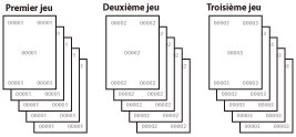 Si le numéro de copie compte moins de cinq chiffres, la machine l'imprime comme suit : Exemple : Si le nombre de copies est égal à 10 10→00010 Aucun numéro de copie n'est imprimé sur les pages blanches (pages sans aucune donnée). Si le mode Numérotation jeux copies est utilisé en combinaison avec le mode Gouttière ou Décalage bord court/Décalage bord long, il est possible que le numéro de copie soit tronqué. Si le nombre de copies imprimées dépasse 99999, il est rétabli à 00001. Le mode Position verticale du numéro/Position horizontale du numéro ne s'applique qu'à la position d'impression des numéros de copie. Lors du réglage d'une position d'impression (autre que celle des numéros de copie), effectuer l'opération avec le mode Décalage bord court/Décalage bord long. (Voir "Décalage bord court/Décalage bord long (Recto)" et "Décalage bord court/Décalage bord long (Verso)".) Le mode Position d'impression est disponible uniquement si l'option [Numérotation jx de copies] est réglée sur [Oui]. Le mode Numéro de départ est disponible uniquement si l'option [Numérotation jx de copies] est réglée sur [Oui]. Le mode Taille du numéro est disponible uniquement si l'option [Numérotation jx de copies] est réglée sur [Oui]. Le mode Densité est disponible uniquement si l'option [Numérotation jx de copies] est réglée sur [Oui]. Le mode Couleur n'est disponible que si l'option [Numérotation jx de copies] est réglée sur [Oui]. Le mode Position verticale du numéro/Position horizontale du numéro est disponible uniquement si l'option [Numérotation jx de copies] est réglée sur [Oui] et l'option [Position d'impression] sur une autre valeur que [5 endroits] ou [Toute la surface]. |