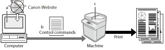 <1> | Using a printer driver, data to be printed is converted to control commands. |