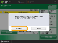 指定した宛先の総数を確認するには画面右上に、指定した宛先の総数が表示されます。送信前に宛先の数に誤りがないか確認することができます。 ![]() 送信中のジョブをすぐに中止するには送信中に操作パネルの (ストップ)を押すと、<以下の送信ジョブを中止しますか?>というメッセージが表示されます。<はい>を押して、送信を中止します。中止したい送信ジョブは、<最後に投入したジョブ>または<送信中のジョブ>を選択することができます。<ストップ押下時に中止するジョブ> 送信ジョブが複数あるときに (ストップ)を押すと、中止対象の送信ジョブが画面に表示されます。中止したい送信ジョブが表示されていないときに<他のジョブを確認>を押すと<送信ジョブ一覧>が表示されます。中止したい送信ジョブを選択し、<中止>を押してください。送信/保存状況を確認するには<状況確認>画面で送信/保存状況を確認できます。状況を確認したうえで、もう一度送信/保存しなおしたり、送信/保存を中止したりすることができます。スキャンの状況や履歴を確認する <ジョブ受付時の確認表示>が<ON>に設定されている場合は、送信ジョブが受け付けられたあとに表示される以下の画面から、<状況確認>画面を表示させることができます。<ジョブ受付時の確認表示> ![]() 送信/保存結果のレポートをプリントするにはスキャンの基本画面で<その他の機能> <送信結果レポート>を押すと、送信/保存結果が記載されたレポートが自動的にプリントされるように設定できます。<その他の機能>からジョブごとに設定するためには、<送信結果レポート>で<エラー時のみ>または<OFF>を選択し<「その他の機能」 でのプリントを許可>を<ON>にする必要があります。 ファイル名について送信/保存されるファイルは、次の形式でファイル名が設定されます。異なるファイル名が付くように設定を変更することもできます(ファイル名を設定する)。 Eメール送信時 「1042_001.jpg」など、「受付番号(4桁)_ページ番号(3桁).拡張子」の形式 ファイルサーバー保存時 「20151030133541.jpg」など、「年月日時分秒(14桁).拡張子」の形式 Eメールの件名について<省略時の件名>に入力されている件名が自動的に設定されます(<省略時の件名>)。異なる件名を指定するときは、設定を変更するか、送信時ごとに指定します(Eメールの設定をする)。 原稿が重ねて読み込まれたときは読み込みが中断され、画面にメッセージが表示されます。メッセージに従ってジャム処理を行ってください。ジャム処理終了後、再開画面が表示されます。誤って重送検知と認識された場合は、<重送検知しない>を押して読み込みを再開してください。 あらかじめ重送検知を通知しないように設定するには、次の操作を行ってください。 送信/保存時ごとにスキャンの基本画面で<その他の機能> <フィーダー重送検知>を押して設定を解除する。<フィーダー重送検知のデフォルト設定>を<OFF>に設定する。<フィーダー重送検知のデフォルト設定> |