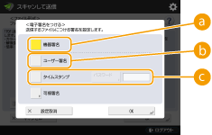 本機の名称を署名としてファイルに付加します。本機を使って読み込んだファイルであることが証明されます。