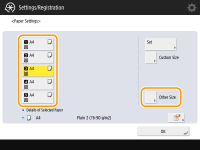 1 | Select the paper drawer in which paper is loaded and press <Other Size>. |