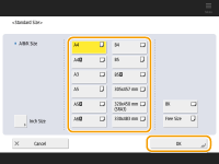 1 | Press <Custom Size>. ![]() You can specify the paper size as <Free Size>, which eliminates the need to enter the paper size setting. Specify <Free Size> when you load paper of unknown size to use for copying or when the paper size is already registered in the printer driver. |
